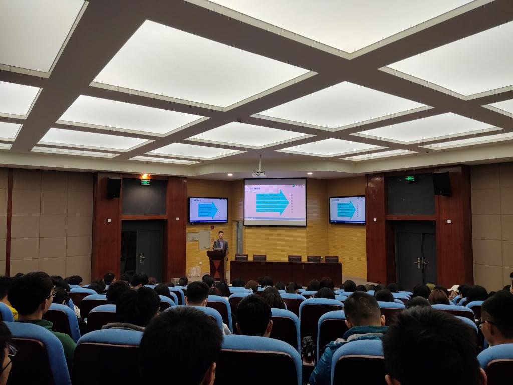 库兵老师是国家一级人力资源管理师,国家二级企业培训师。有着非常丰富的人力资源管理工作经验,具备超高的职业素养。本次讲座库兵老师首先讲述了大学生进入企业需要从意识、心态及行为进行角色的转换。其次是大学生职业发展通道,了解企业的业务结合自己的长处做出正确规划。接下来讲述了大学生应如何初步制定职业发展规划,并且对自己所在企业科研做出介绍。最后,库兵老师对面试技巧提出“三结合”方法,以及面试时可能出现的问题进行剖析。同学们全程也都非常认真的聆听和学习,不少同学与库兵老师进行了互动。