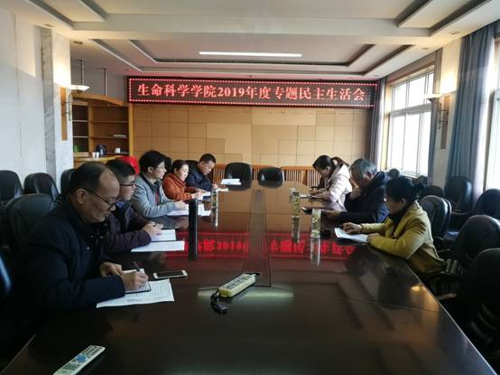 领导班子在学院大会议室召开2019年度专题民主生活会。学校指导组组长、副校长张大平同志,指导组副组长、组织部副部长张伟同志,组织部科长沈谦同志应邀参会,学院处级党员领导干部、非党员处级领导干部(列席)参会。会议由学院党委书记蔡哲斌同志主持。