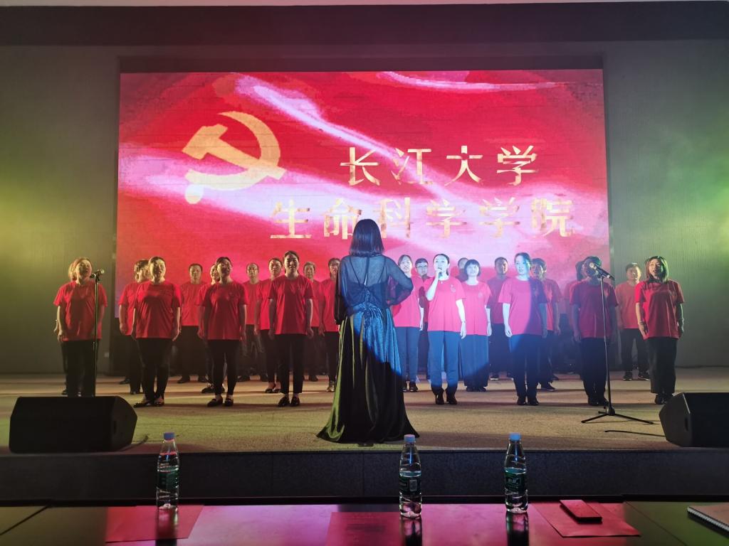 诗朗诵《一百年华》追忆党的百年光辉岁月为晚会拉开了序幕。《祖国不会忘记》表达了对革命先烈及研制“两弹一星”的科学家的深情缅怀;《我的南方和北方》歌颂了祖国大好河山;《英雄赞歌》、《飘向红色》、《我的祖国》回顾了中国共产党百年辉煌奋斗历程,《我们都是追梦人》展现了生科人永远跟党走的坚定信念和强烈的使命担当,发出了生科人奋斗新征程的时代强音。晚会节目形式丰富新颖,师生党员百余名演职人员情绪高昂、精神饱满,采用合唱、舞蹈、民乐、朗诵、情景剧等多种艺术形式,抒发了生科人爱党爱国的赤诚情怀、接力奋斗新百年的昂扬斗志。