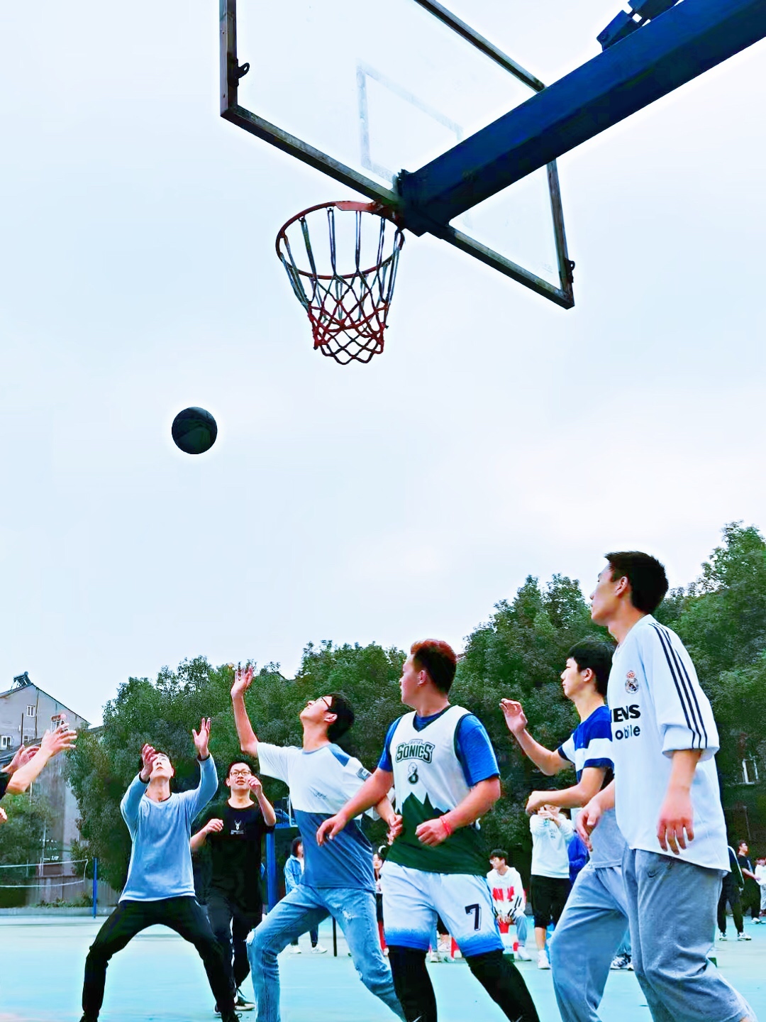 赛前,双方队员派出代表猜拳决定发球顺序。哨声响起,现场的氛围逐步攀升,狭路相逢勇者胜,比赛双方很快进入了激烈的角逐。运球、传球、假动作、三步上篮……赛场上,队员们比拼激烈,队员之间默契传球、完美配合引来围观同学一阵阵地喝彩。场外观众为球员加油助力,声音一声比一声高。休息时间,每队派出两名女生投篮助兴,为比赛得分助力。比赛结束后,双方队友握手拥抱,充分展现了“友谊第一,比赛第二”的体育精神。