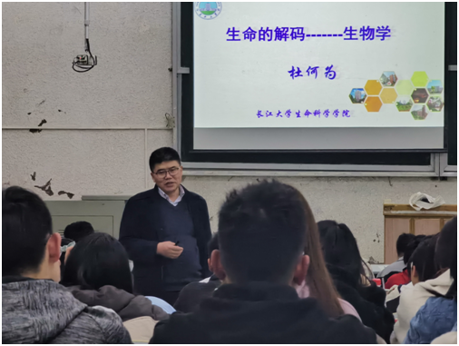 “何为生物学,千人千面,性格迥异,不同的人会有自己独特的风格,而这些都是由我们的遗传基因与变异决定的,这些都与生物学有关。”杜何为老师以此向同学们形象地介绍生物学,从专业历史、专业设置、课程设置、学科建设、学科平台五个方面向同学们介绍了色情动漫
