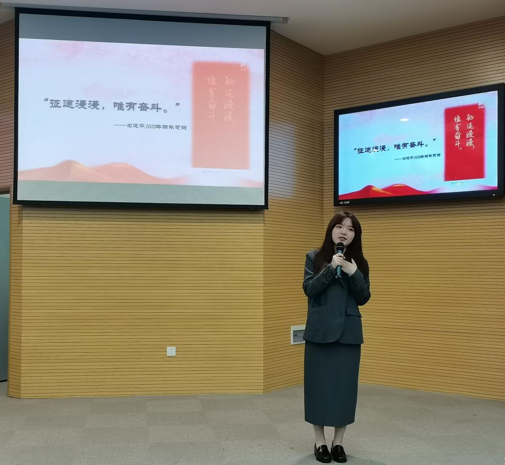 第一名获得者别致同学以“百年风雨同舟共济,今日青年负重前行”为题向同学们讲述了青年奋斗的意义。“身为新时代的青年,我们应心怀壮志,不畏艰难险阻,勇挑时代重担,让青春之花在党和国家人民最炫丽的地方绽放。”继而,她结合自身经历,谈了疫情期间她的家乡武汉人民的奋斗故事。别致同学时而慷慨激昂,时而舒缓动情,声情并茂地讲述着当代青年应承担的时代担当,也向大家展示了自己作为青年人的责任与担当。实现中国梦,每位青年都应时刻准备着。
