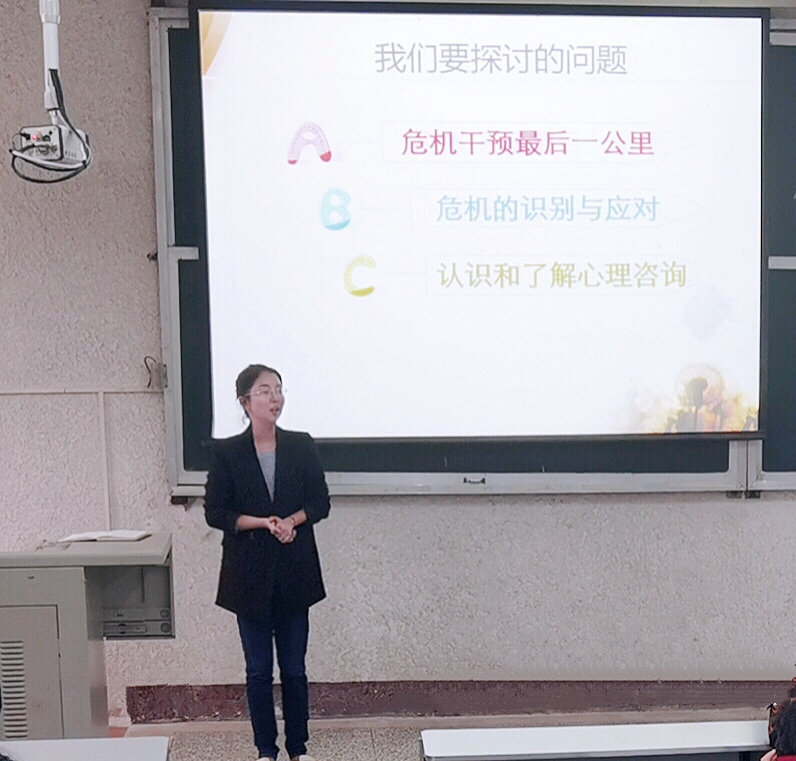 在五教103开展了以“校园心理危机的识别和应对”为主题的心理骨干培训。培训由学院心理专干范昆琨老师主讲,各年级班长、团支部书记、寝室长共两百余人参加此次培训。