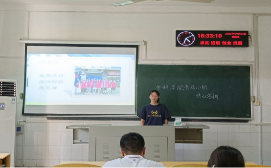 最后,宋咏恬对本次答辩进行了点评及总结,希望青马学习小组的组员们不忘青马精神,坚定脚下,事事求极致,绝不敷衍;同时也期待组员可以更好的传承、发扬青马精神。