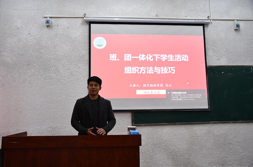 以及园艺园林学院共同进行2021年初干班培训。主讲人为各学院分团委书记、园艺园林辅导员担任,各学院优秀干部参加此次培训,培训时长近6个小时。
