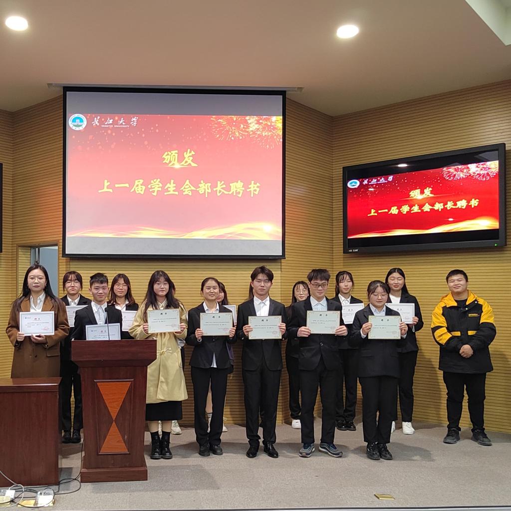 学生会是各个部门各司其职,相互配合才能发展到如此壮大。为表扬学生会优秀人才,汪萍书记和兼职辅导员上台为学生会优秀部长及优秀干事颁奖,祝愿他们能在新的学期里更上一层楼。颁奖结束,20届优秀部长伍英杰、主席团代表王彭及21届学生会主席李俊慧分别上台发言,他们分享了自己在学生会工作期间的感悟和经验,为21届学生会的发展提出了宝贵意见,使大家受益匪浅。最后,党委副书记汪萍老师寄语学生会,希望学生会能不畏艰险,蓬勃发展。