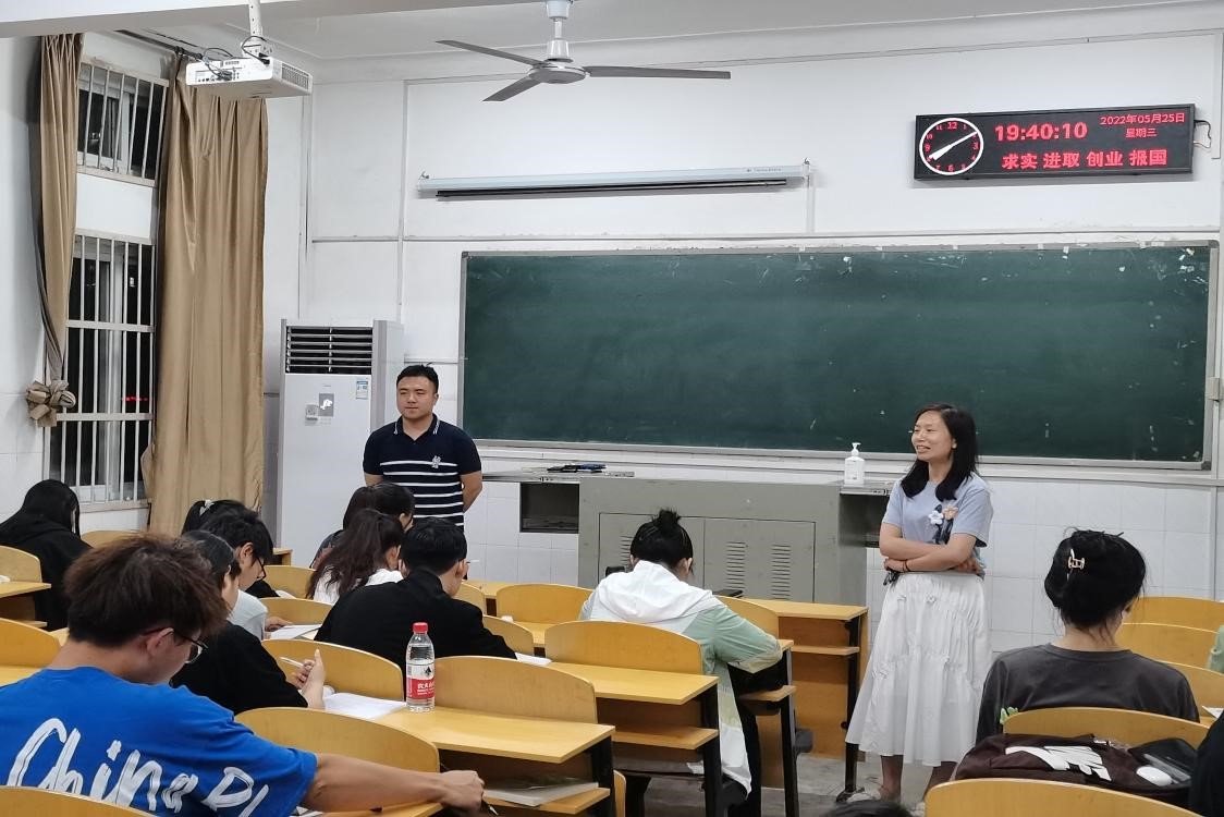党委副书记汪萍老师和21级年级辅导员顾志翔老师进入各班晚自习教室督查晚自习,为即将参加英语四级考试和期末考试的21级同学们加油鼓劲。