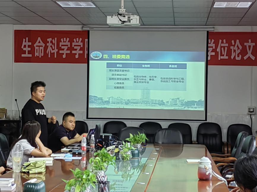 随后进行了新生班班委的竞选,通过激烈的竞争,最终选出生物和食品两个班级的十位班委。新上任的班委表示,一定会认真工作,切实为同学们解决问题。