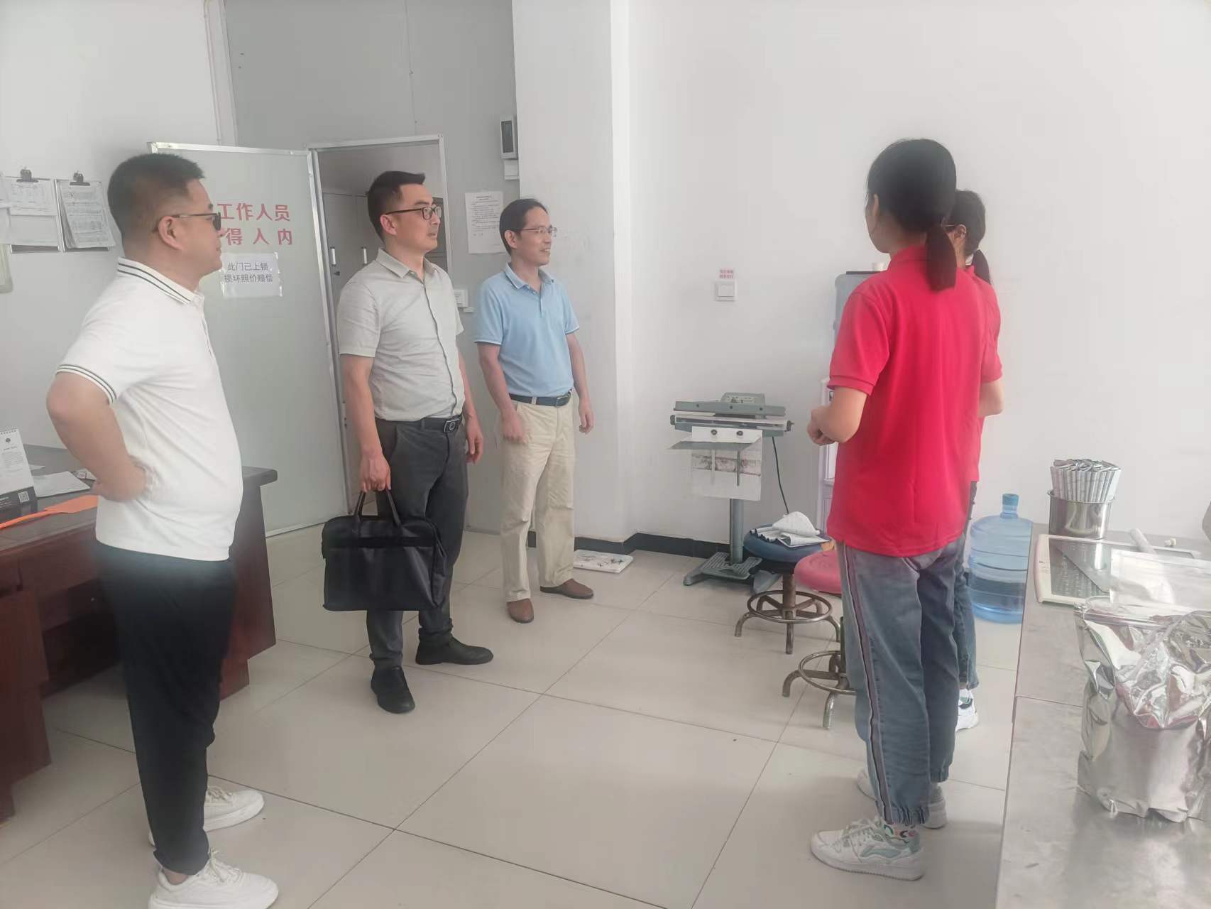 (通讯员 章崇烁)为深入了解2020级本科生实习实践情况,推进学校人才培养质量提升, 8月2日,学院党委副书记万波,指导老师江洪波、刘应保,辅导员章崇烁等一行4人走访了宜昌海通食品有限公司、荆州市金童食品有限公司、长江水产研究所、荆州市疾病预防控制中心,看望参加实习的学生,为实习生送去学院党委的关怀和问候。