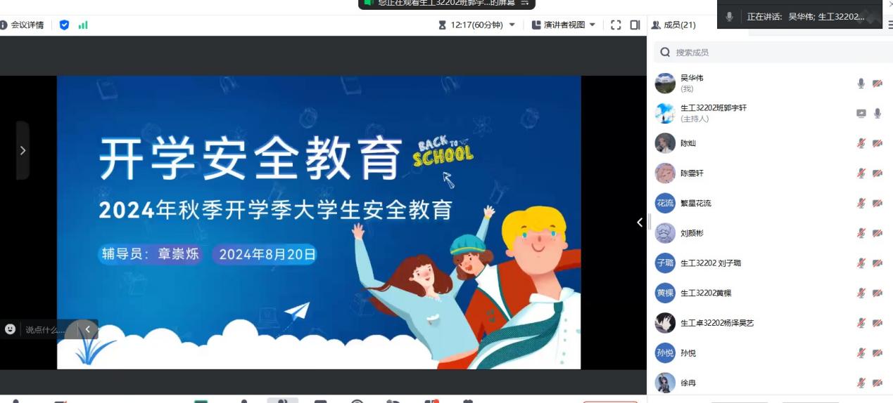 “逐梦理想、安全护航”生科学院召开秋季开学前主题班会