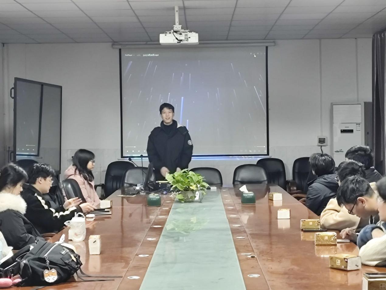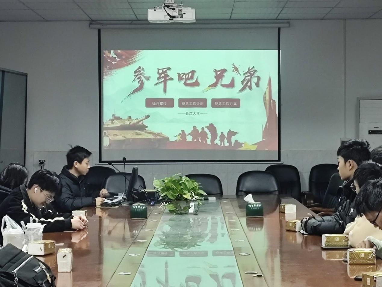 在 1 教 217 室举办“参军吧,兄弟”征兵宣讲会,会议由退役大学生士兵陈翔主持,各班级代表参加。