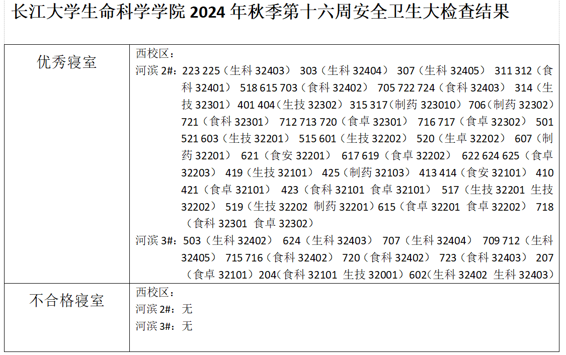 色情动漫 2024年秋季学期第十六周安全卫生大检查结果