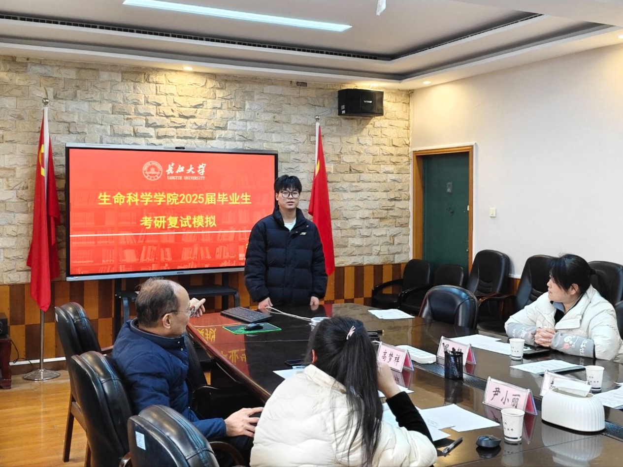 在行政楼323会议室举办2025届毕业生考研复试模拟活动。本次活动通过全流程实战演练,帮助考研学子提升应试能力。高梦祥、熊涛、赵福永、杨华林、尹小丽、马静、范凯等7位老师担任评委。
