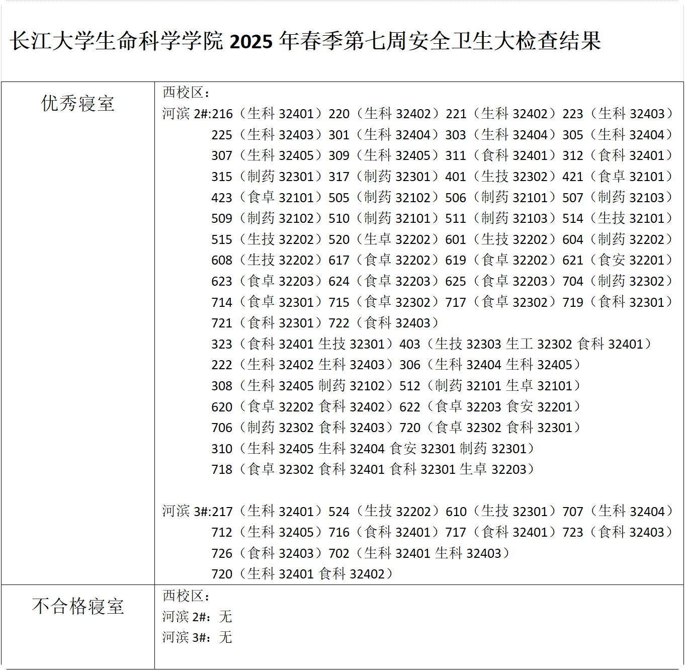 色情动漫 2025年春季第七周安全卫生大检查结果