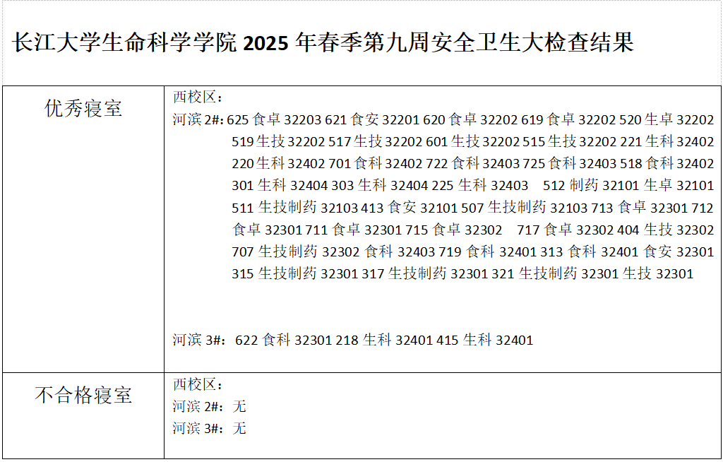 色情动漫 2025春季学期第九周安全卫生大检查结果