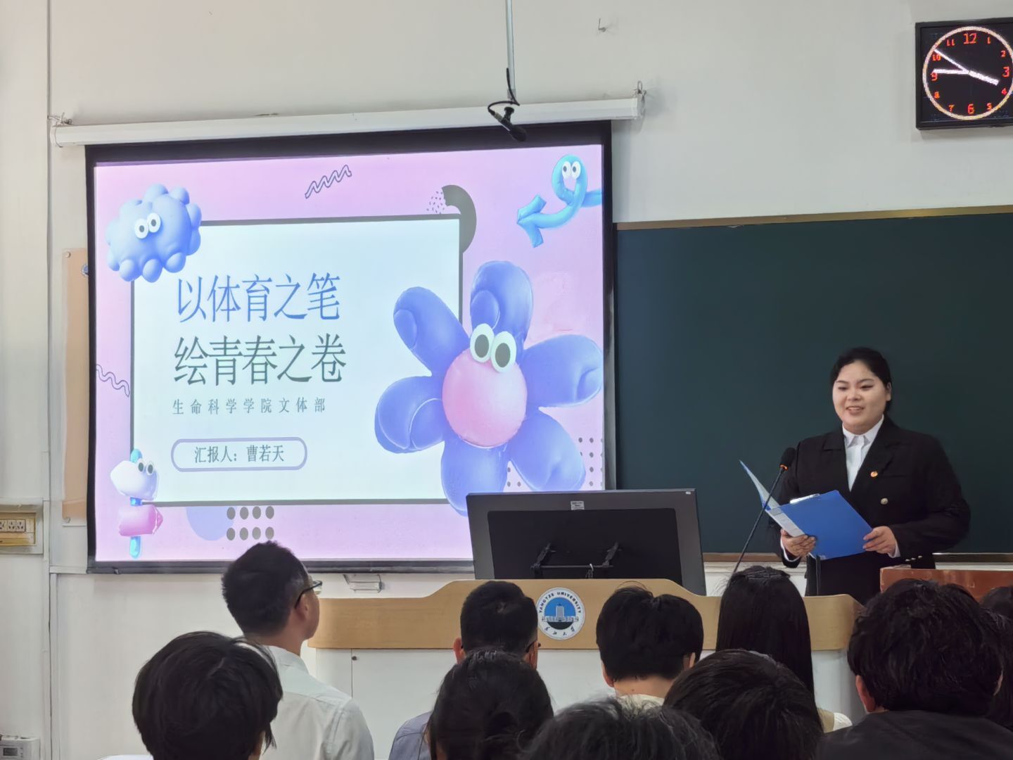 各部门负责人依次上台,通过具体数据与案例分析,围绕部门职能、工作成果、存在问题及改进方向作了生动的汇报。汇报限时5分钟,汇报完毕后,指导老师就工作细节、创新思路等方面提出了针对性建议。