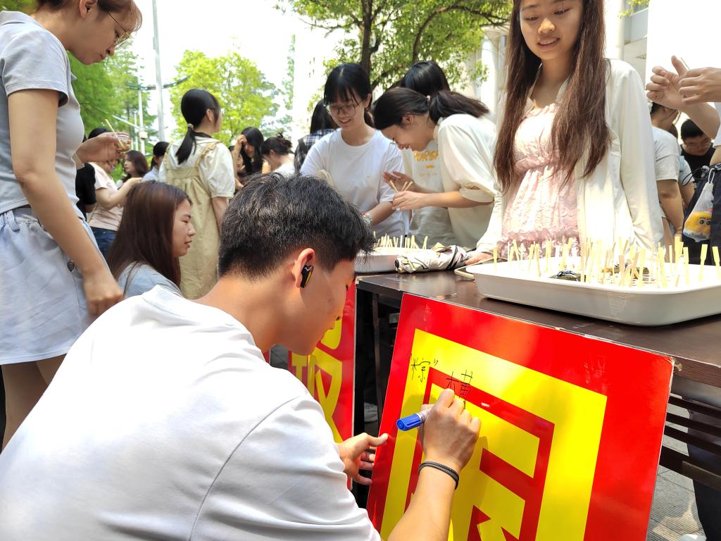 西区教学楼广场粽香四溢,热闹非凡,一场名为“美好食光,粽情分享”的美食品鉴活动,在粽叶簌簌声中拉开帷幕。作为第三届长江美育文化节的特色项目,这场以味觉为媒的文化盛宴,让三百余师生在指尖流转间触摸端午文脉。