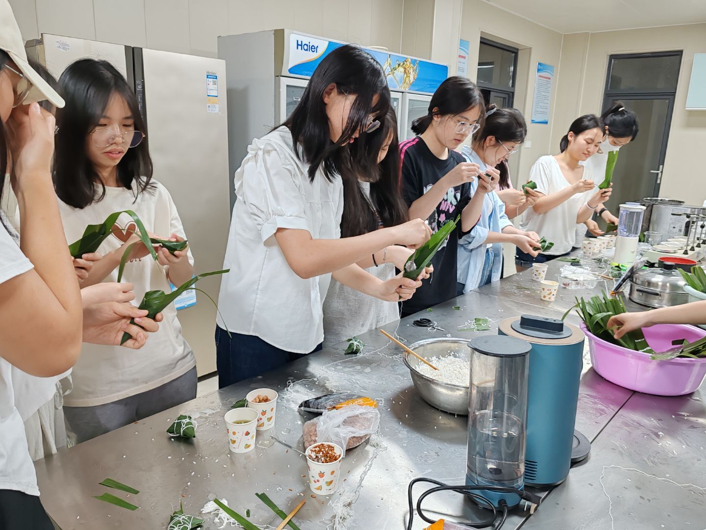 直到最后一片粽叶裹入粽绳,同学们才擦着手上的糯米,依依不舍地离开。这场舌尖上的美食品鉴与动手实践,让师生们实实在在地体验了端午包粽的传统技艺,深刻感受到了非遗文化的独特魅力。