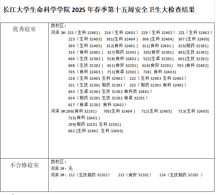 色情动漫 2025春季学期第十五周安全卫生大检查结果