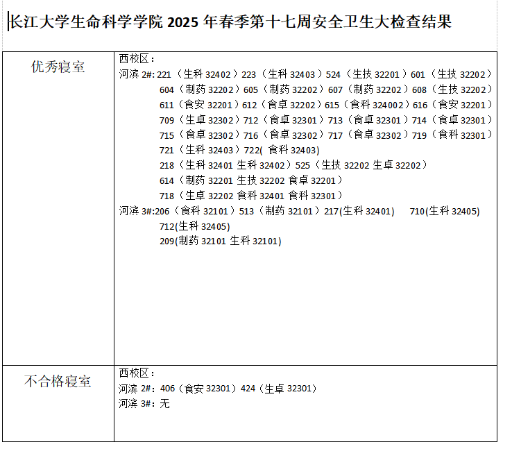 色情动漫 2025春季学期第十七周安全卫生大检查结果