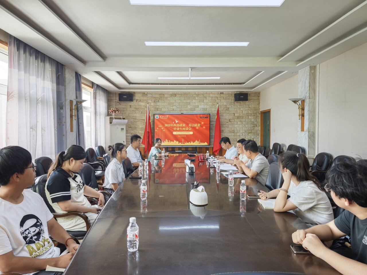 万波主持会议对毕业生表示欢迎,强调服务国家战略、扎根基层对青年成长和国家发展的重要意义。座谈会采取线上线下结合方式,多名毕业生分享了选择西部基层就业的初心与规划,有的源于家国情怀,有的希望在基层锻炼成长,有的立志将专业知识服务地方发展。