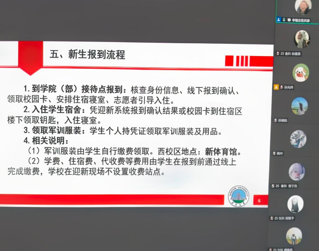 2025级新生会议以年级大会形式集中召开。一切从“新”开始,对即将到校报到的310名新生表示热烈欢迎。辅导员李敏详尽讲解了新生入学报到的流程和注意事项,线上为学生们答疑解惑,为学生顺利安全到校报到打好坚实基础。