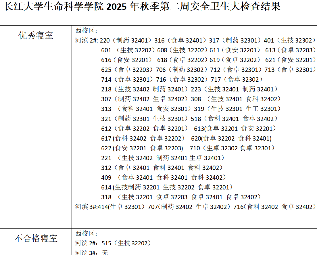 色情动漫 2025秋季学期第二周安全卫生大检查结果
