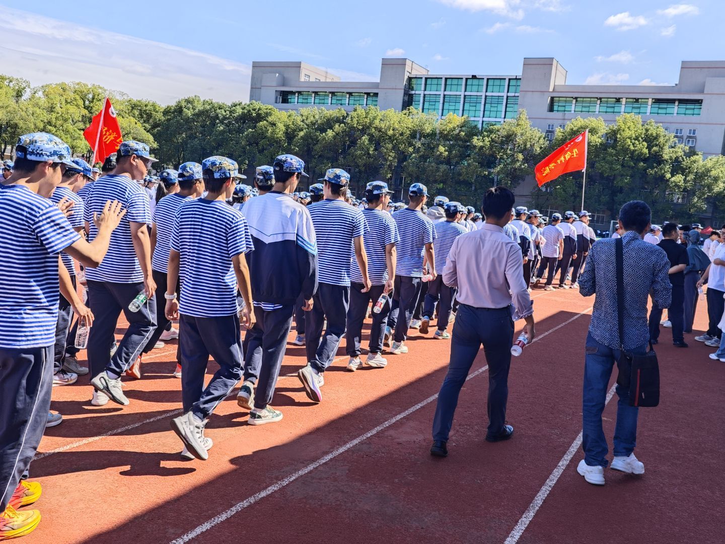 训练场上,军体拳方阵口号震天,动作刚劲有力;此起彼伏的拉歌比赛,唱响了团结与青春的热情。在充满挑战的5公里徒步拉练中,学院党委副书记万波全程带队,班主任老师们并肩前行,用坚实的陪伴为同学们注入了无限动力。