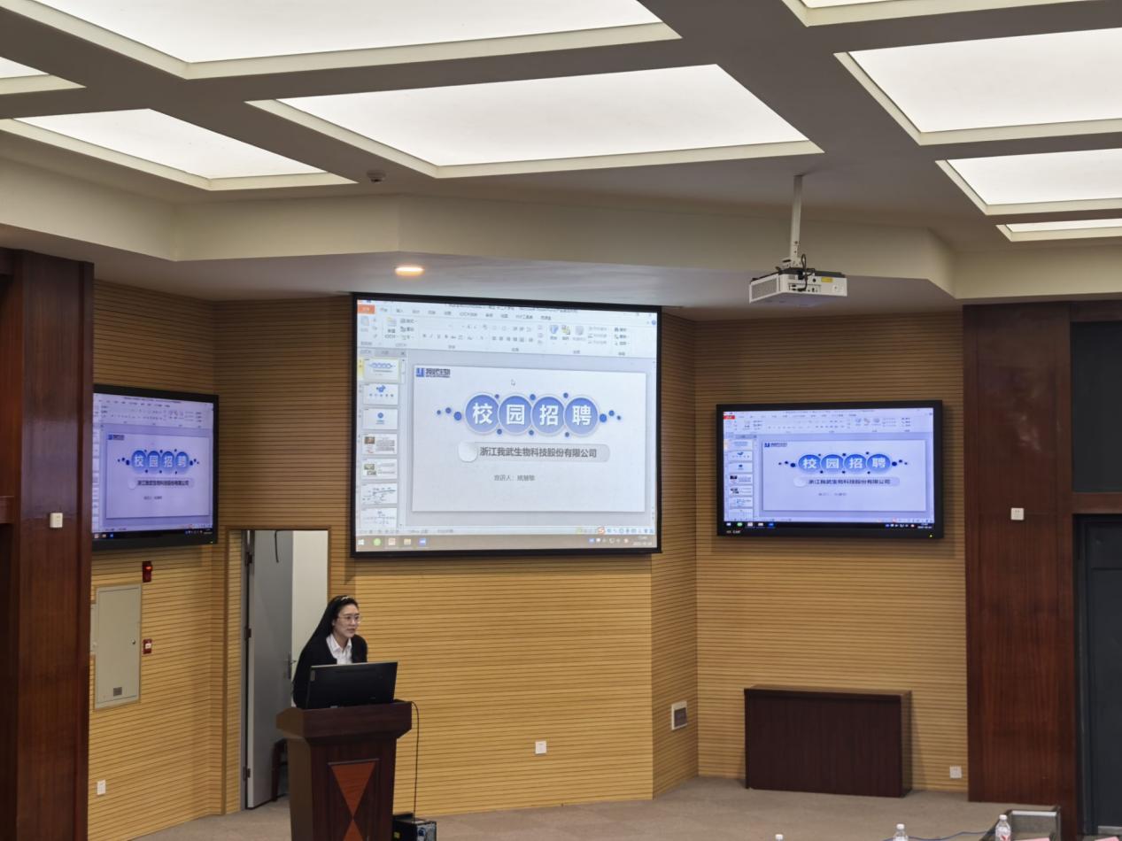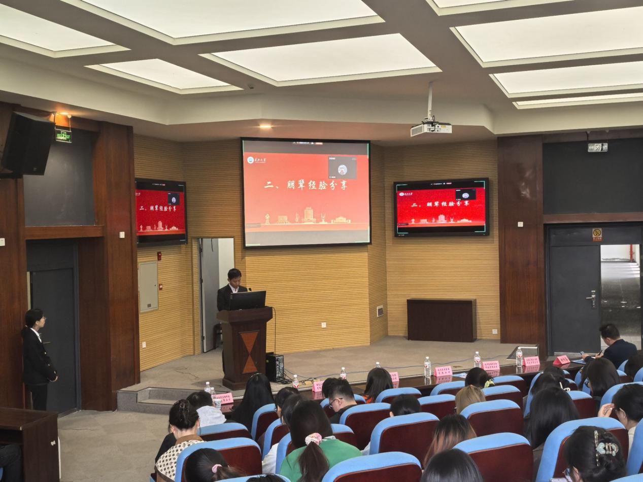会议分两阶段进行。第一阶段为考研就业动员:研究生罗雪莲聚焦考研冲刺阶段,分享复习规划、学科方法、重难点突破及心态调节技巧;校友谢梅芳梳理求职经验、职场适应及本研过渡建议;章崇烁随后用10分钟讲解网签系统操作与注意事项。学院党委书记谢作喜作总结时,鼓励学子结合自身制定个性化计划,并送上发展祝福。第二阶段为企业宣讲,浙江我武生物、湖北小胡鸭食品、珠海宝锐生物等6家企业依次发言,覆盖生物医药、食品领域,介绍岗位需求与发展路径,搭建就业对接平台。