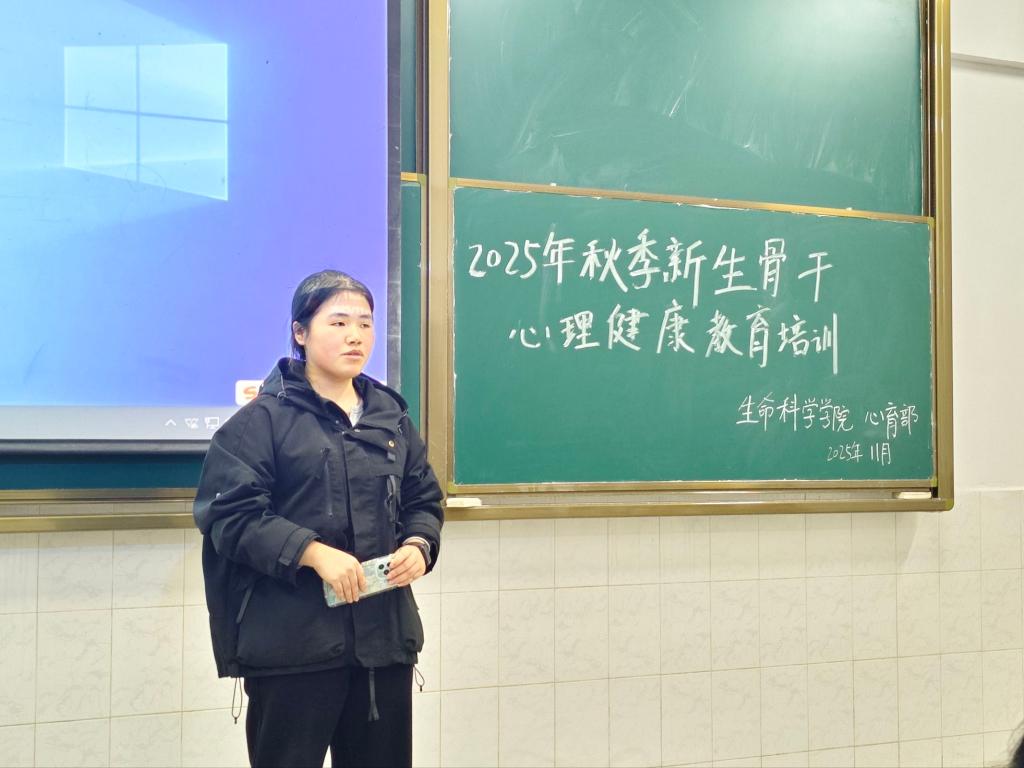 (通讯员 朱翠玲)为提升新生心理骨干专业素养,筑牢校园心理安全防线,11月14日晚7时,我院在5教215室顺利开展了2025级秋季新生骨干心理健康教育培训。学院心理专干朱翠玲老师、优秀心理骨干肖悦、吴先霞以及全体2025级新生学生骨干参会。
