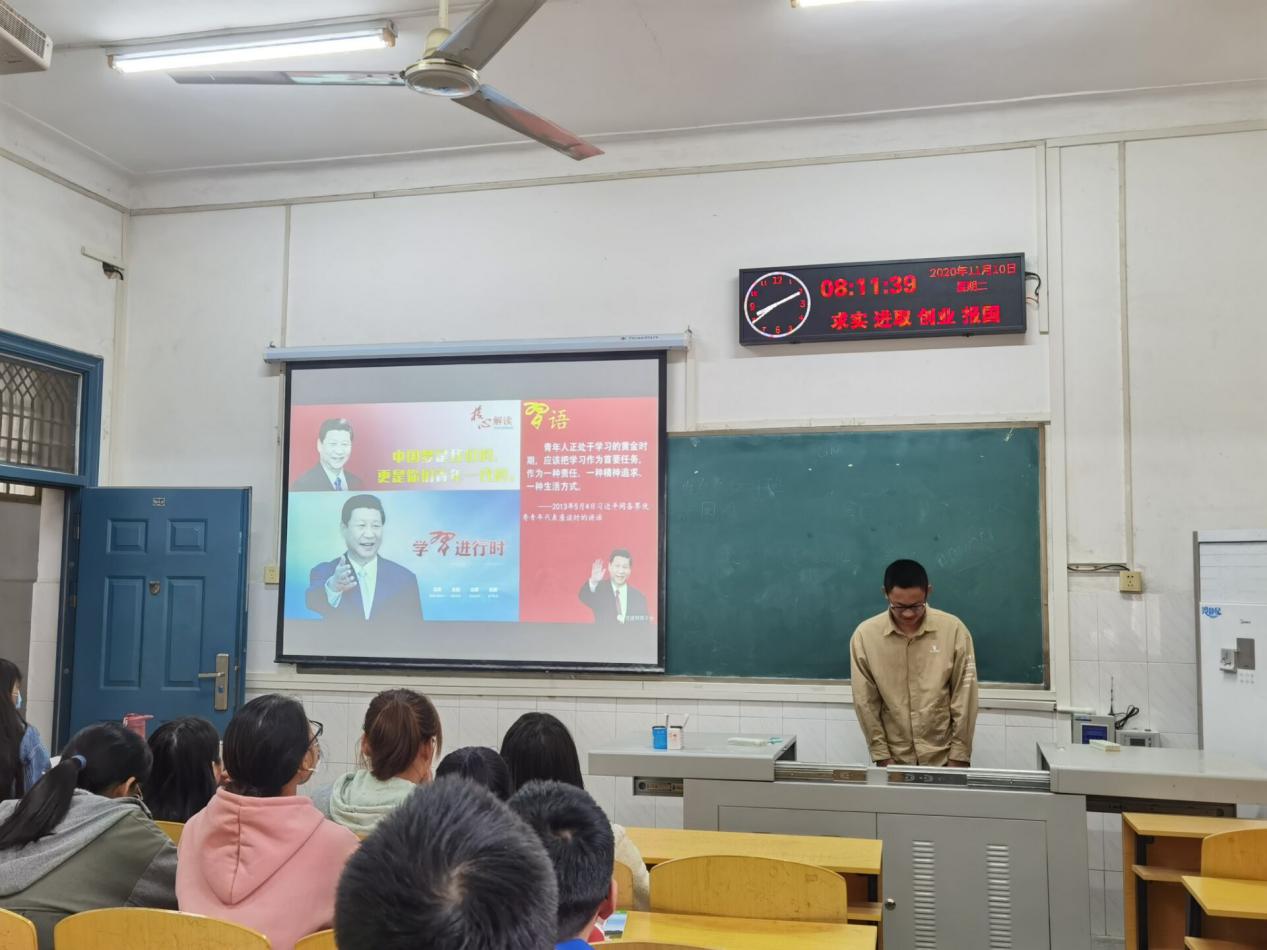 学子奋发有为的精神面貌,不忘初心,牢记使命。组织学习习近平致西藏民族大学建校60周年的贺信精神;学习习近平寄语南开学子:志存高远,脚踏实地,学习习近平勉励西安交大师生:继续发扬西迁精神;学习习近平致哈尔滨工业大学建校100周年的贺信精神;学习习近平给中国戏曲学院师生的回信精神。生命科学32001班全体同学于2020年11月10日9:50,在6教105召开“学习新思想 建功新时代”主题团会。