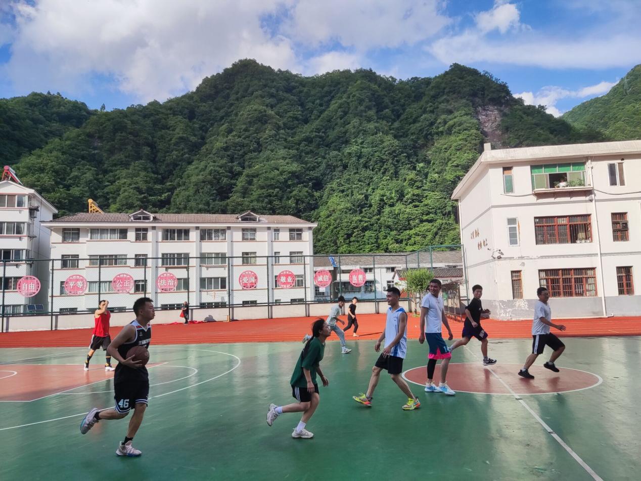 “青松”队的篮球友谊赛在神农架林区木鱼镇小学举行。