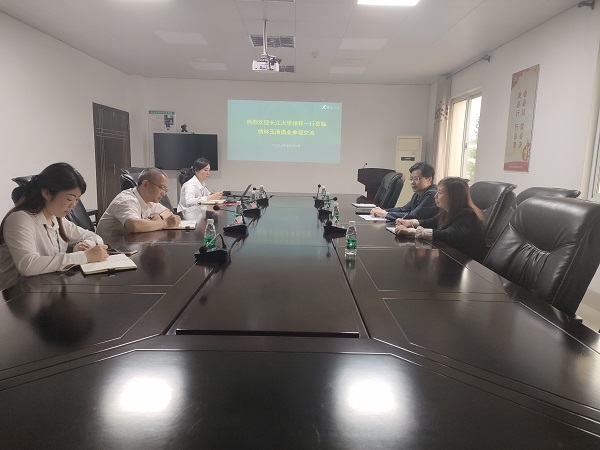 在湖北省绣林玉液酒业有限公司,蔡哲斌一行与该公司党委书记贺汉兵、总经理王大健、人力资源部部长代红等领导开展交流座谈,并进行毕业生就业实习基地签约及授牌。